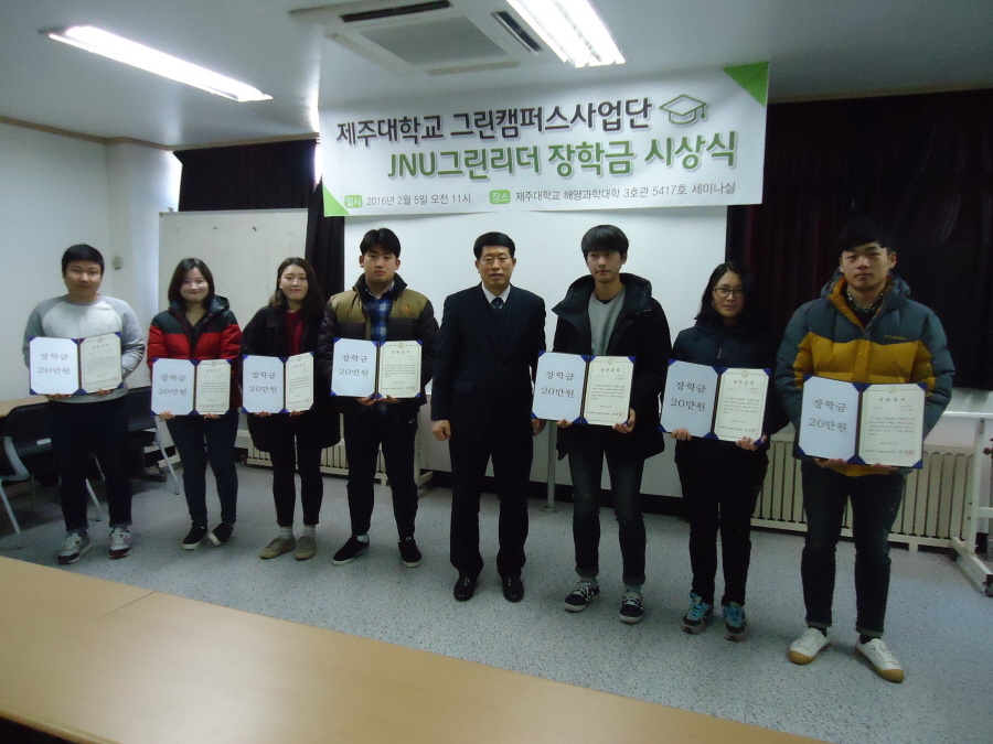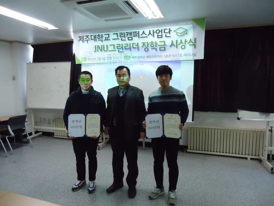 2016년 2월 5일 해양과학대학 3호관 5417 세미나실에서 2차 그린리더장학금 시상식이 있었습니다.